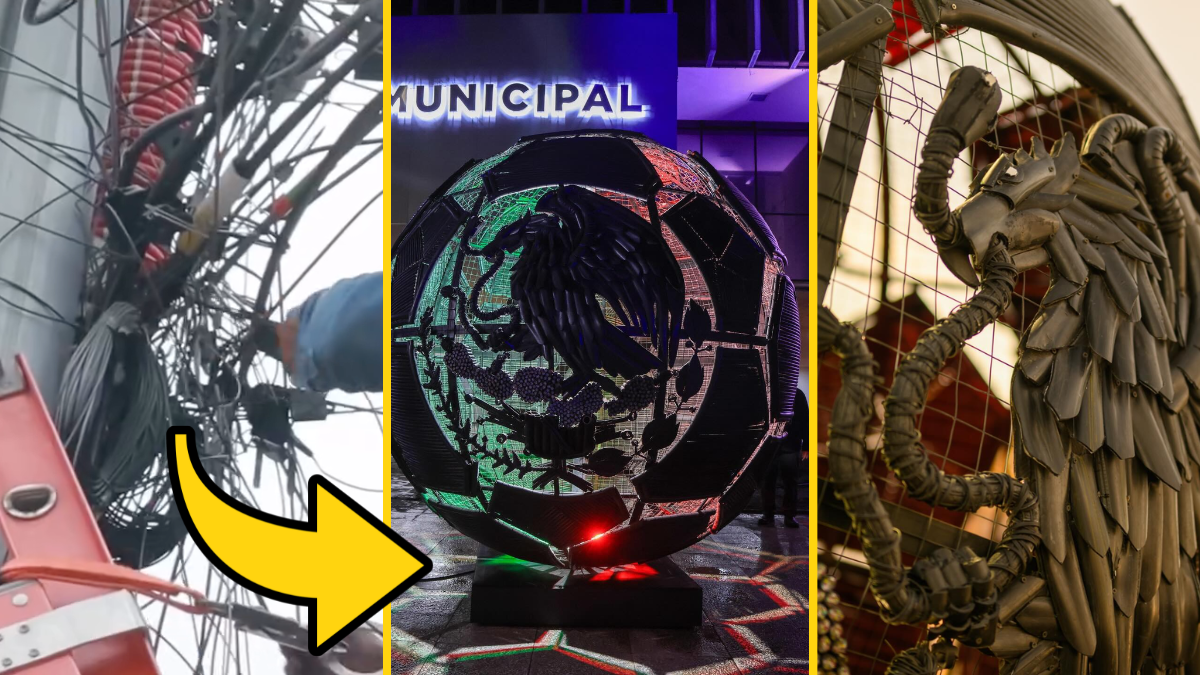 Con cable en desuso retirado de la vía pública con el Programa “Mty Limpio”, develaron una escultura con forma de balón rumbo al Mundial.