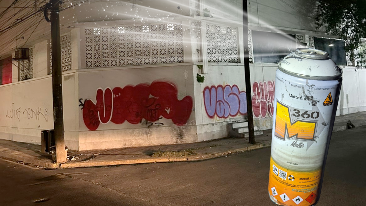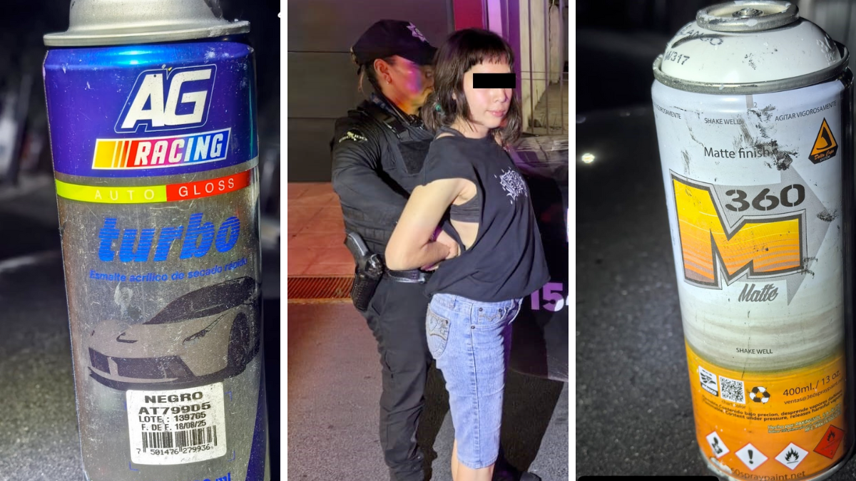 Al llegar, encontraron a un hombre y una mujer colocando grafiti sobre la superficie del inmueble. Ambos sostenían latas de aerosol y continuaban realizando trazos. La intervención se realizó sin complicaciones y los jóvenes fueron asegurados de inmediato. Esta respuesta rápida evitó mayores daños a la propiedad y permitió documentar el acto en el momento exacto en que ocurría.